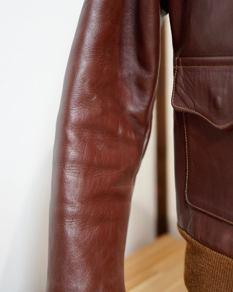 ❶約3年前に製作したCanyon A-2 size 38サンプル(ラセットブラウン)